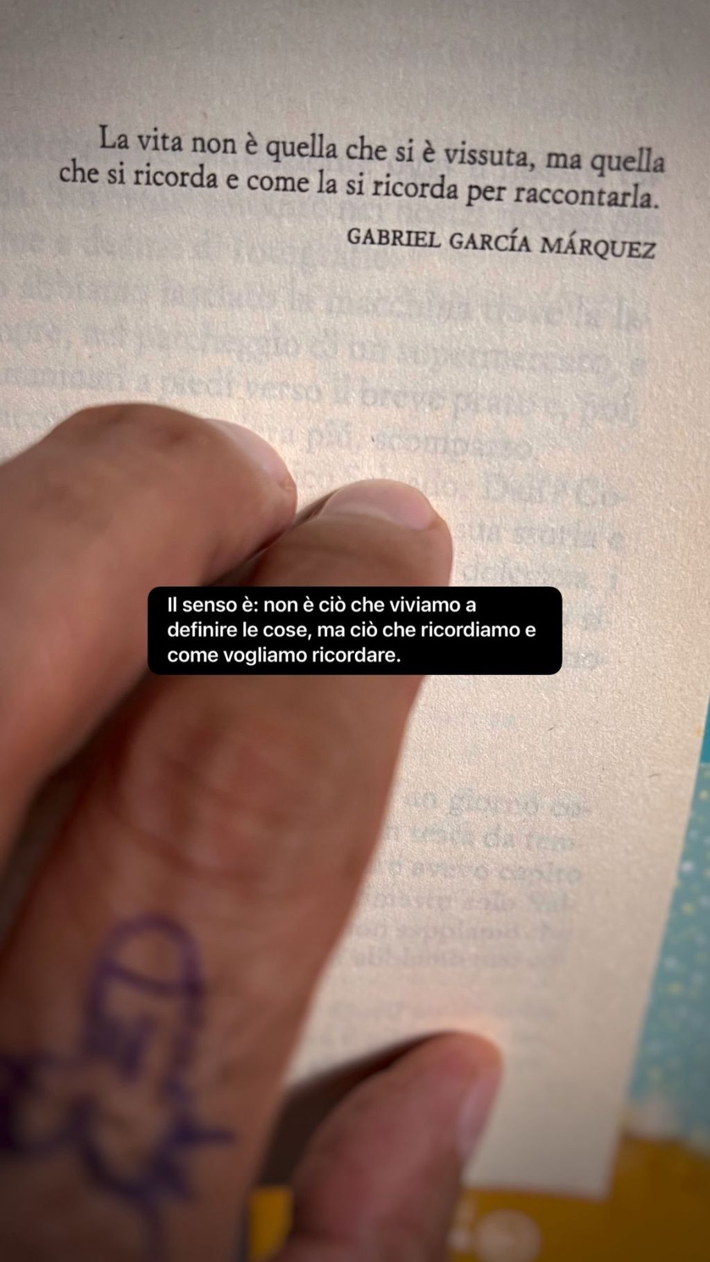 La memoria come definizione della vita: Gabriel García Márquez ci invita a riflettere su come la vita che viviamo sia meno importante di quella che ricordiamo. Non è ciò che accade a definire la nostra esistenza, ma come scegliamo di ricordarlo e raccontarlo. La memoria diventa, quindi, un atto creativo che trasforma il vissuto in narrazione, selezionando e dando forma ai dettagli che desideriamo custodire. Un pensiero profondo sulla soggettività della nostra percezione del tempo e della realtà.